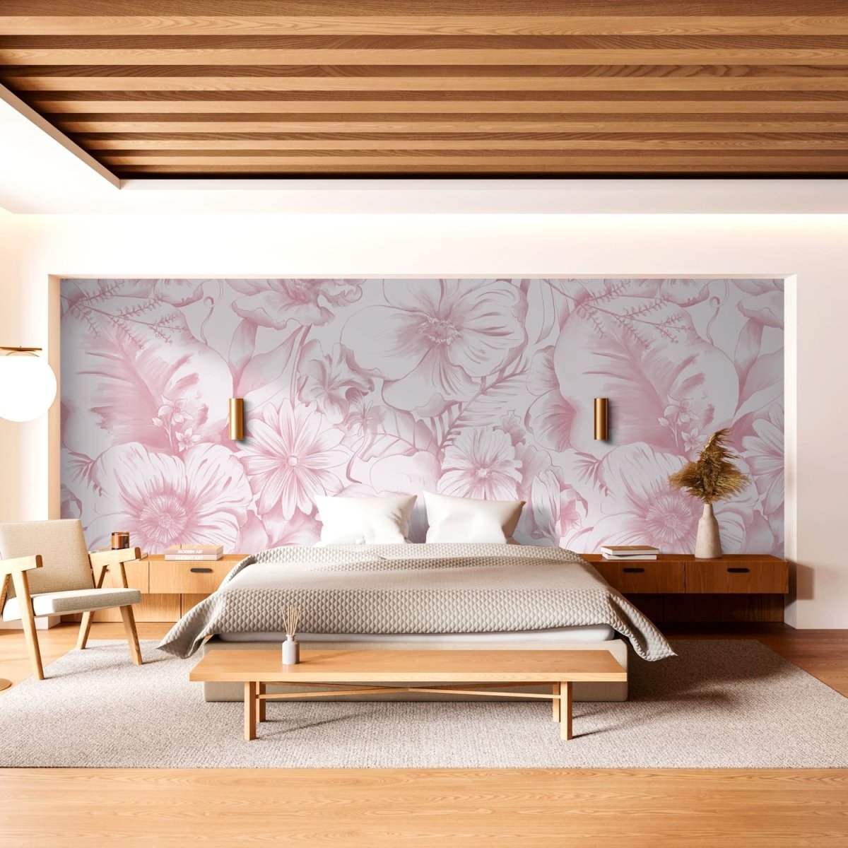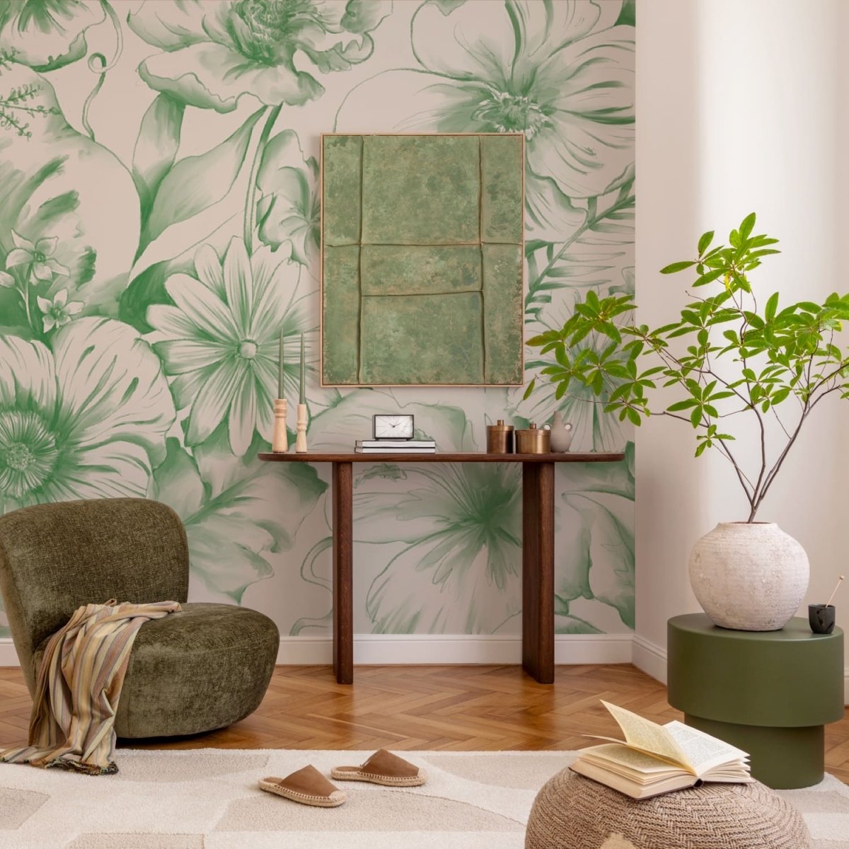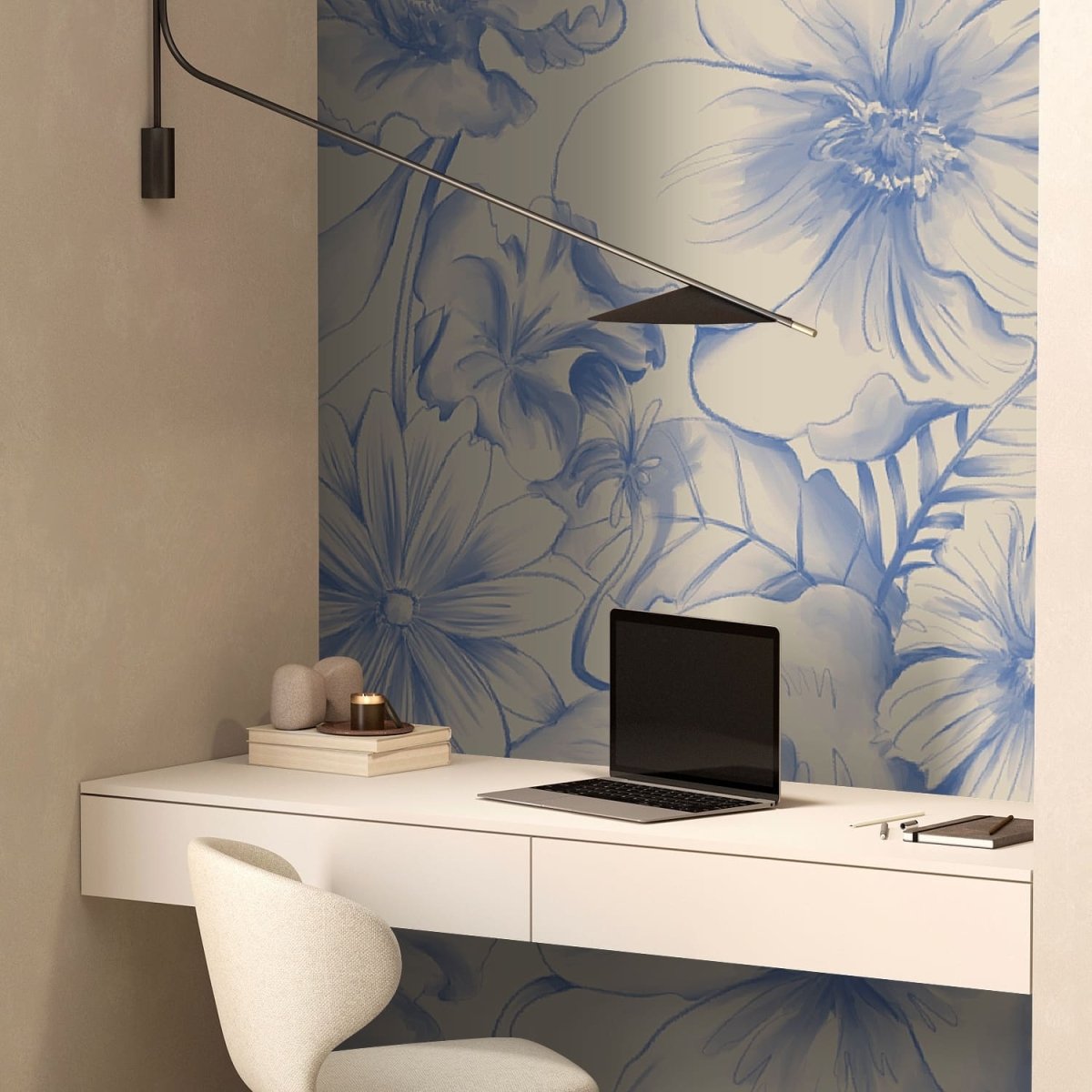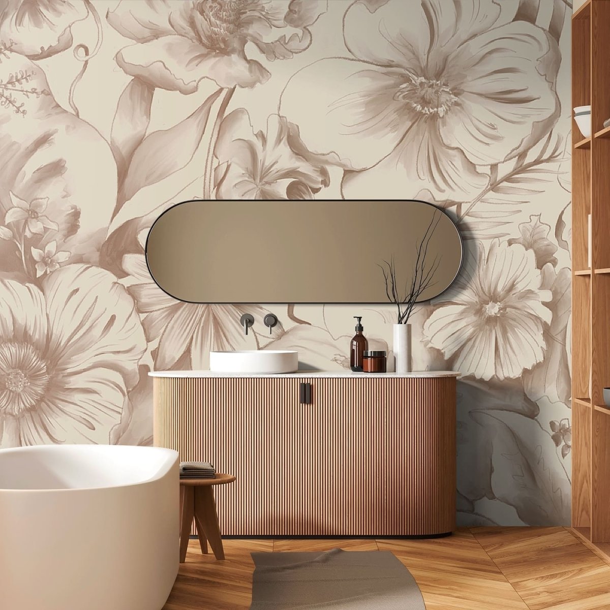 A beautiful close-up of vintage floral and herbs illustrations, that can be placed as you wish. This wallpaper features large, detailed plants in shades of monotone choices, artfully placed against a textured vintage background, creating an ambiance of refined grace. Perfect for those seeking to add a touch of classical beauty to their modern homes.
