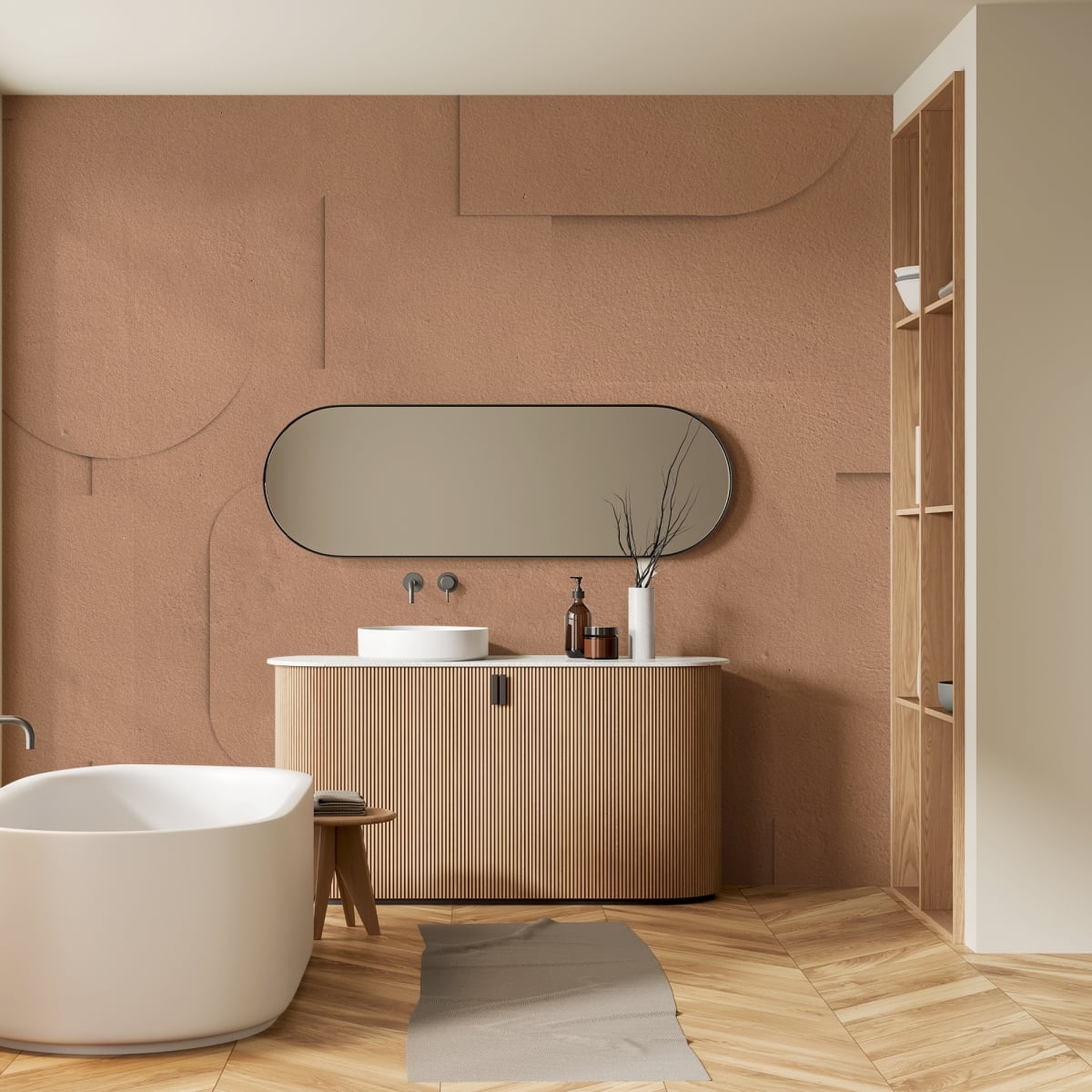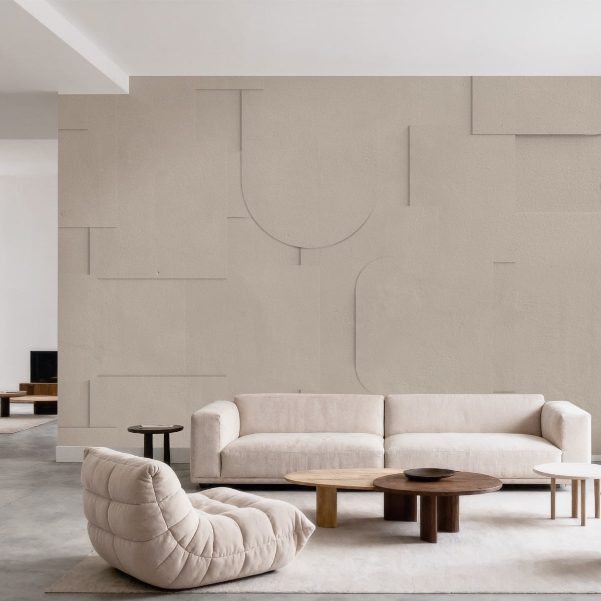 Experience the beauty of raw form with Tectonics. This mural celebrates the minimalist intersection of geometry and natural materials. Inspired by unfired clay and architectural reliefs, the design uses subtle shadows and layered "slabs" to create a tactile 3D effect on a flat surface. Its warm, sandy beige tone provides a grounding, earthy foundation for modern, soft brutalist, or Japandi style interiors.