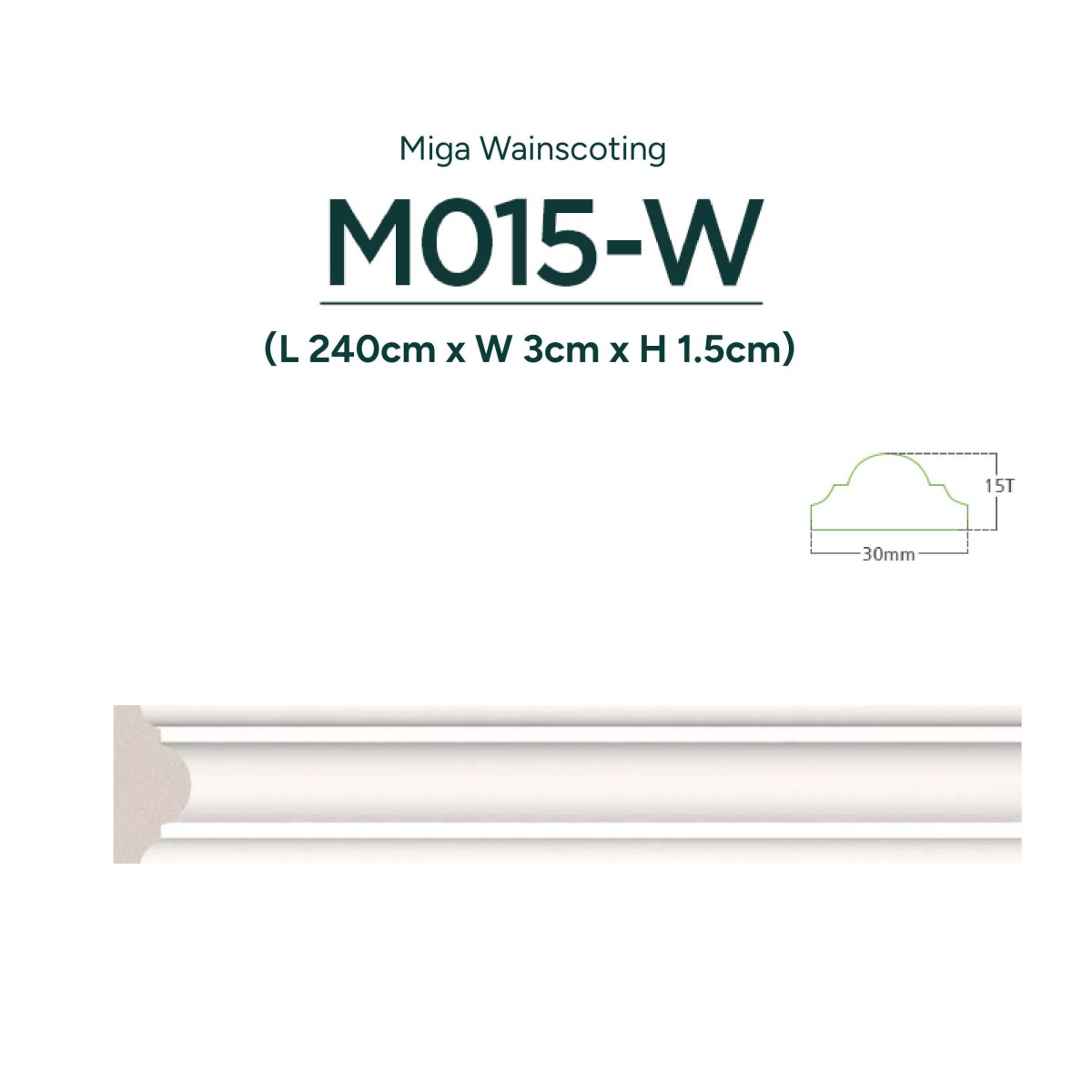 L 240cm X W 3cm X H 1.5cm