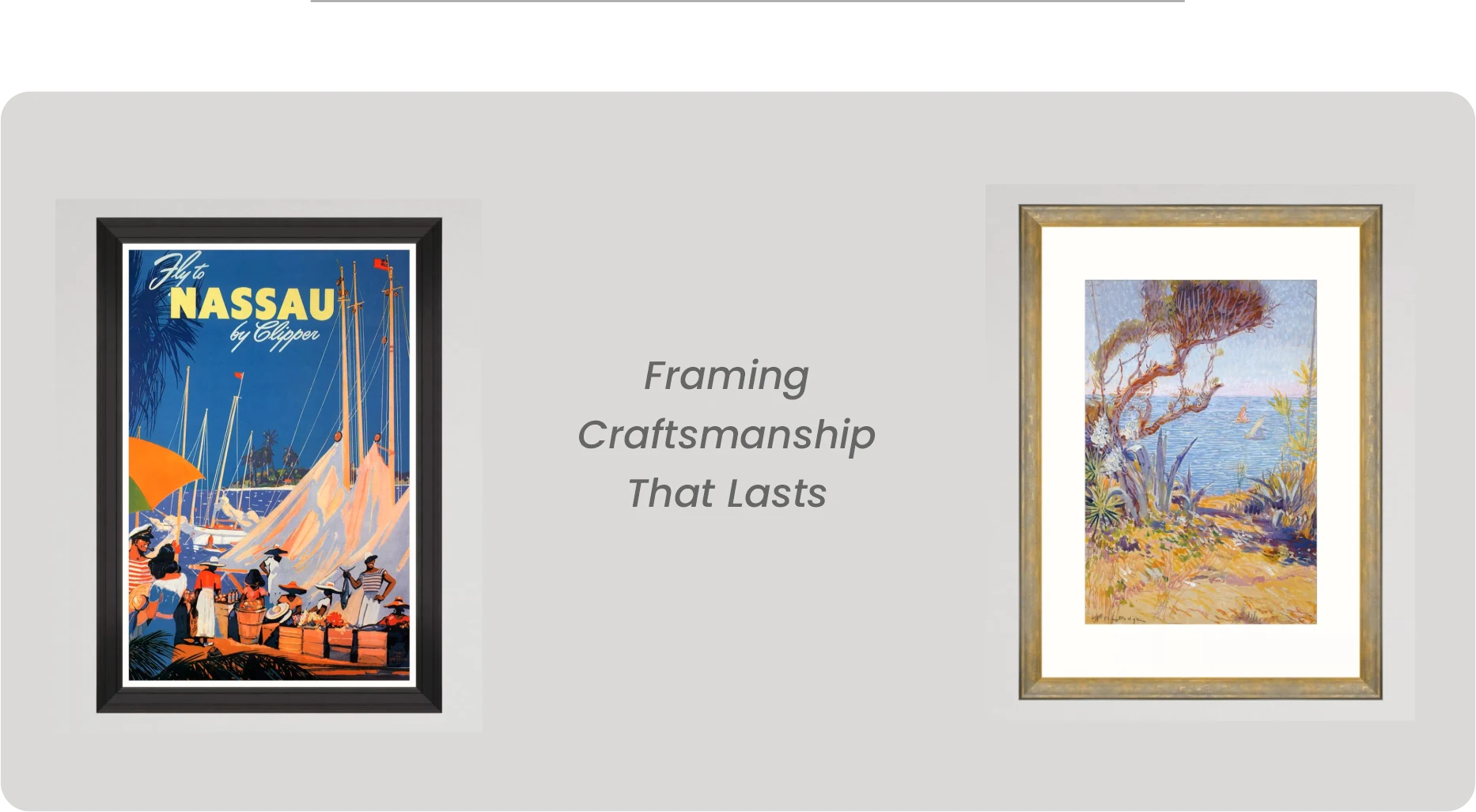 The artwork is pre-mounted and ready to hang, complete with backing, glazing (glass or acrylic), and hanging hardware.
