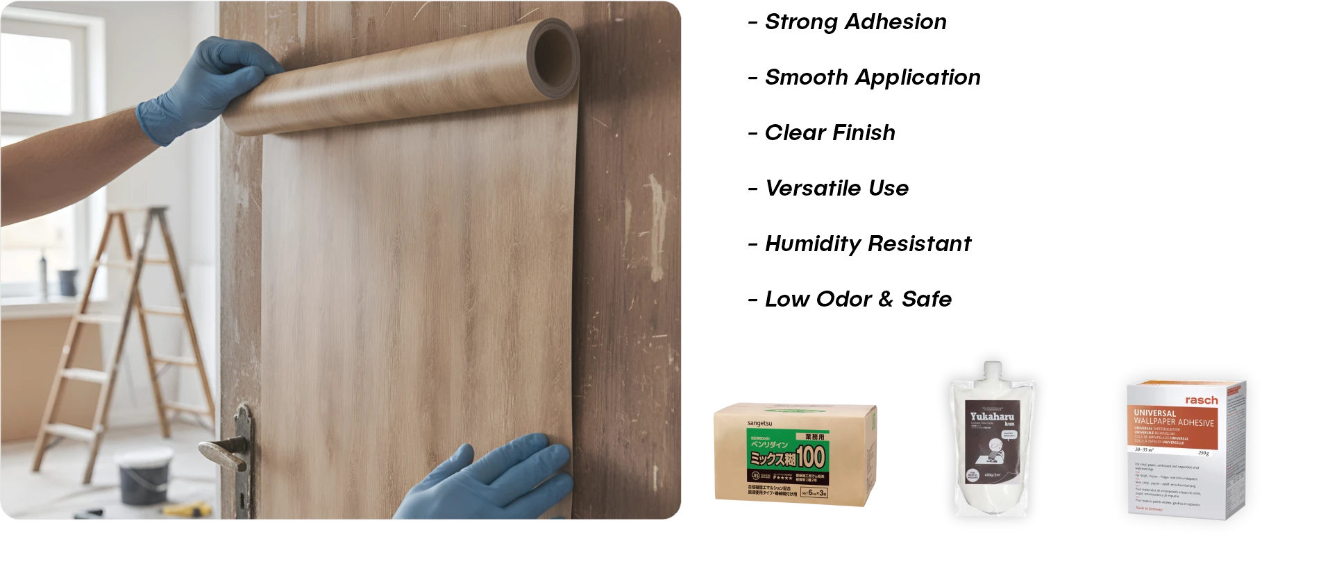 This adhesive provides consistent performance and effortless application. It spreads easily, sets firmly, and dries clear, leaving your walls flawless and beautifully finished. With our wallpaper adhesive, every installation becomes smoother, faster, and more durable — just the way it should be.