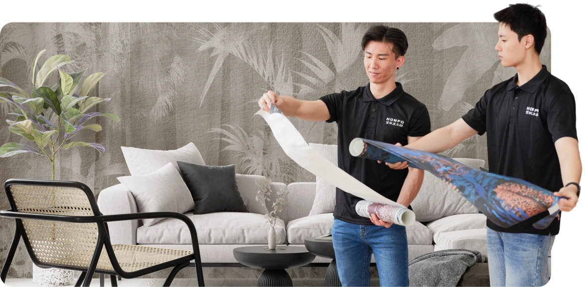 At Honpo, we pride ourselves on delivering top-notch wallpaper installations with the help of professional tools and high-quality materials. Our installation process begins with thorough preparation, including removing old wallpaper and ensuring the surface is smooth and ready for the new design. Our team uses toxic-free glue that is odorless and safe to ensure a clean finish. We also make sure that all surfaces are properly plastered, sanded, and filled with putty where needed to guarantee a flawless result.